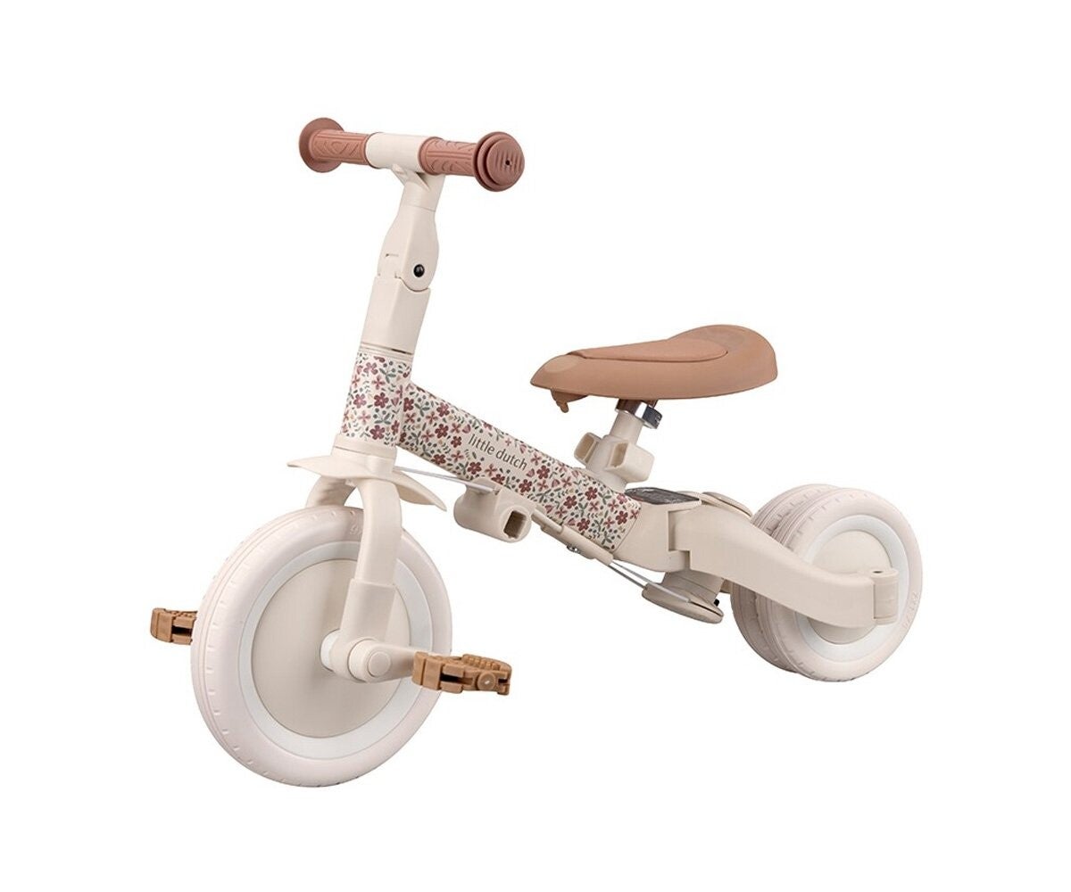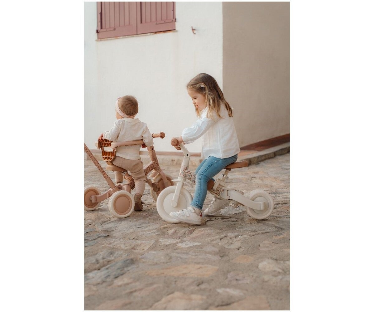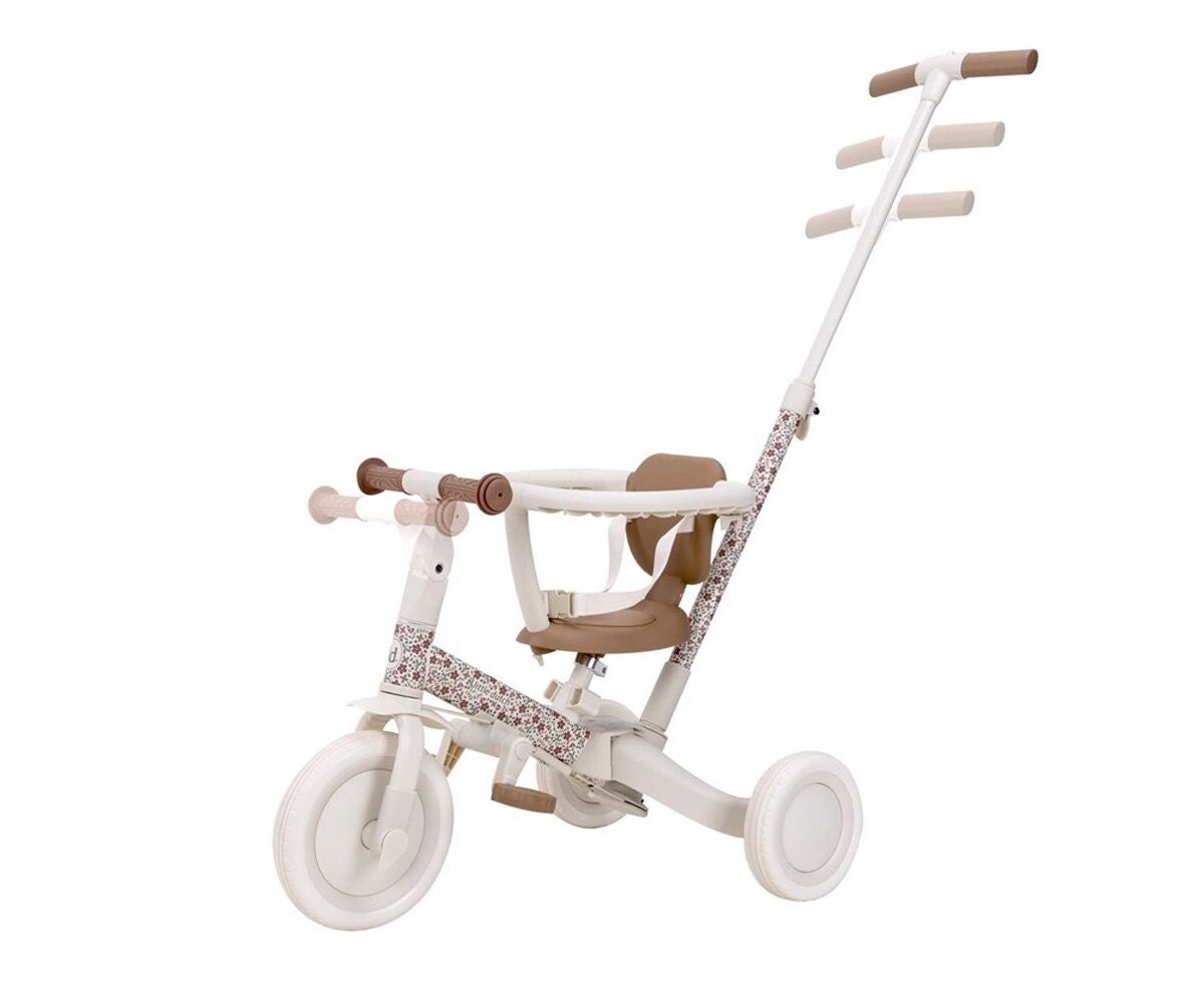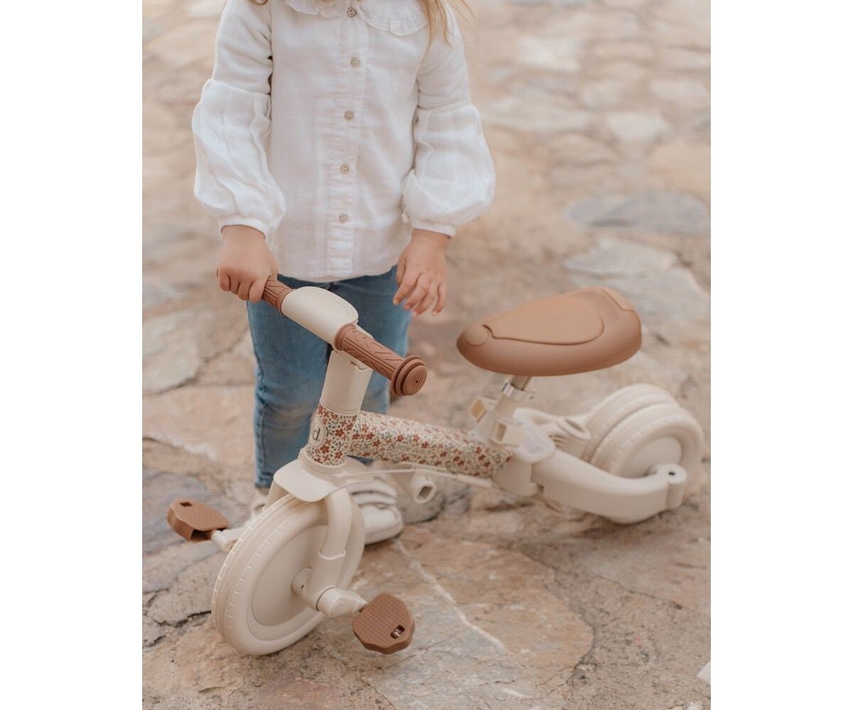 Triciclo 4 en 1 color blanco roto con flores