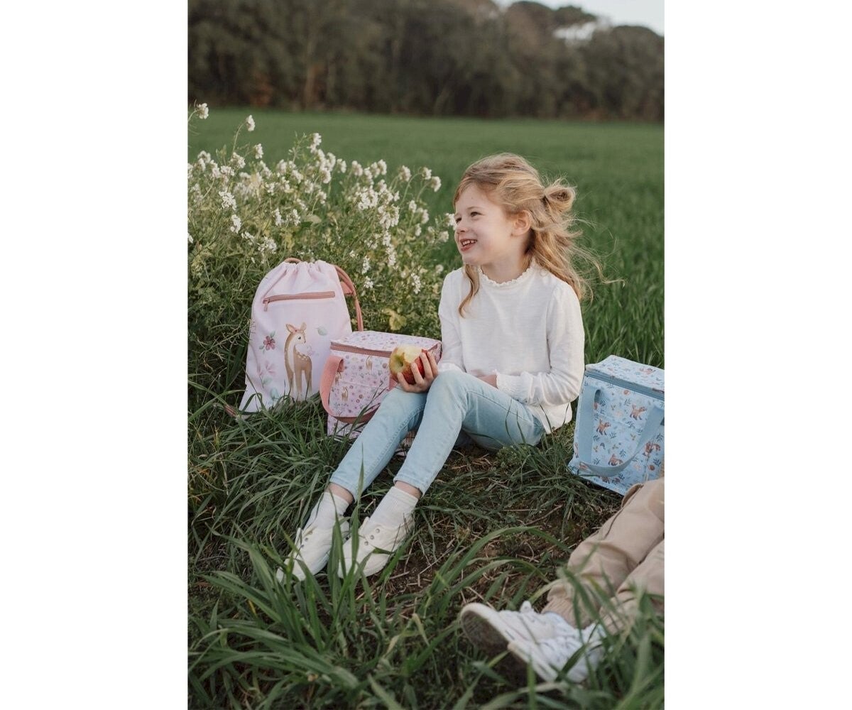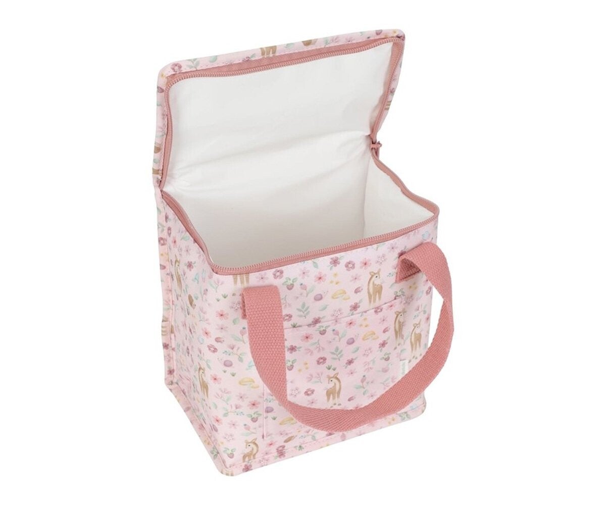 Preciosa bolsa para el almuezo isotérmica con diseño de la colección Fairy Garden hecha de lona resistente fácil de llevar a todas partes gracias a sus asas.