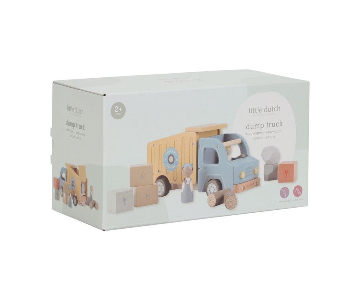 El Camión Dúmper de madera FSC de Little Dutch es el juguete perfecto para peques curiosos y constructores en potencia. Con una caja basculante funcional, este robusto camión permite transportar cargas, volcarlas y volver a empezar... ¡una y otra vez!