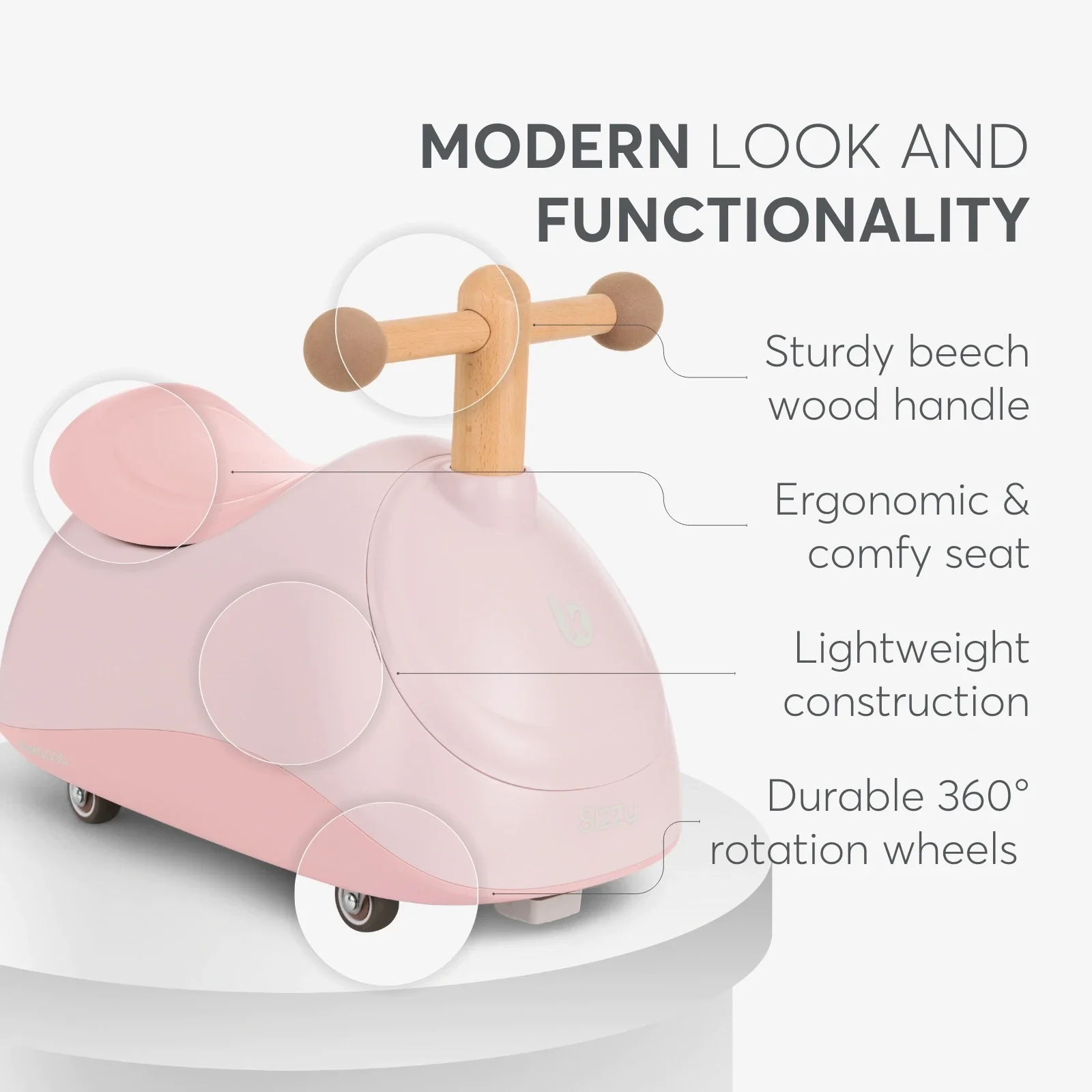 Con SIZZY encontrarás la combinación perfecta de diversión, seguridad y comodidad. Diseñado para inspirar el juego activo, este correpasillos ayuda a los pequeños a desarrollar sus habilidades motoras y a explorar el mundo con confianza, ya sea en casa o al aire libre.