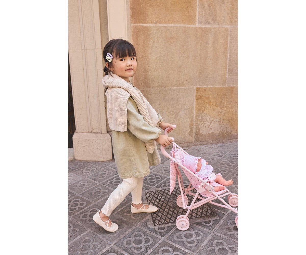 Monnëka presenta la silleta para muñecas plegable, con apertura de seguridad para evitar accidentes y bolsito con estampado a juego en el que guardar todos los accesorios que sus muñecos necesiten.Tu peque lo pasará en grande imitando a los mayores y dando cuidados a sus muñecos con la silleta Flowers.