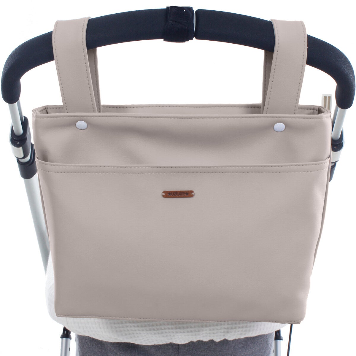 Se puede acoplar a cualquier tipo de cochecito y también permite poderlo llevar en el hombro gracias a una tira que va en el interior. Muy elegante y práctica para llevar todo lo necesario para ti y tu bebé.