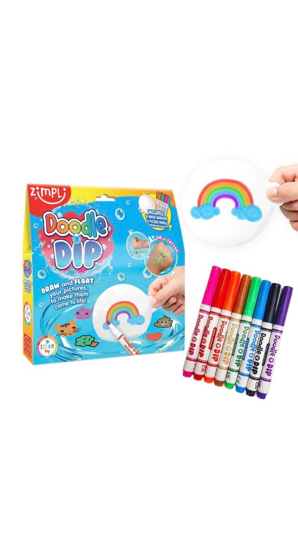 Convierte el baño en un momento de creatividad y diversión con Doodle Dip de Zimpli Kids. Un juego original que permite a los niños dibujar sus propios diseños y ver cómo flotan en el agua.